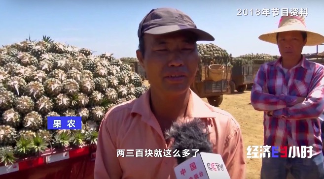 在正常年份,最晚五月初,廣東的菠蘿銷售就進入尾聲。然而當時一直等到了六月盛夏時節(jié),在徐聞縣最大的菠蘿交易市場里,果農們依然還在苦苦等待買家的到來,一車菠蘿幾百元就賣。