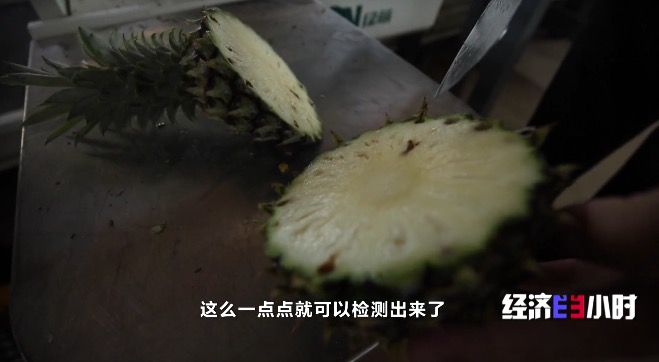 緊扣“12221”市場體系的品牌打造、銷量提升、市場引導、品種改良、農民致富等“1”攬子目標,2022年剛剛開始運營的湛江菠蘿產地運營中心,面向所有菠蘿果農和采購商開放。運營中心的設備可以檢測出菠蘿的糖度、水心、黑心的狀況,提高了上市菠蘿的整體質量。有了運營中心的牽線搭橋、品質把控,雙方交易起來都非常省心。