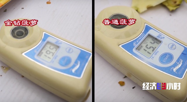 普通菠蘿的含糖量為15%左右,而金鉆菠蘿的含糖量為19%左右,具有明顯優(yōu)勢。