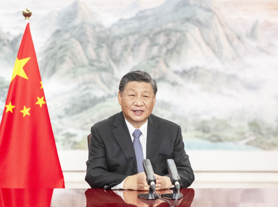 ↑2022年11月5日,習(xí)近平以視頻方式出席在武漢舉行的《濕地公約》第十四屆締約方大會(huì)開幕式并發(fā)表致辭。