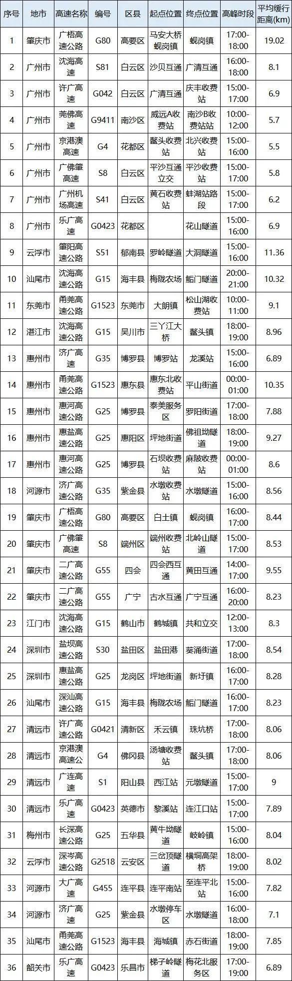 預(yù)計(jì)高速公路緩行點(diǎn)段36處