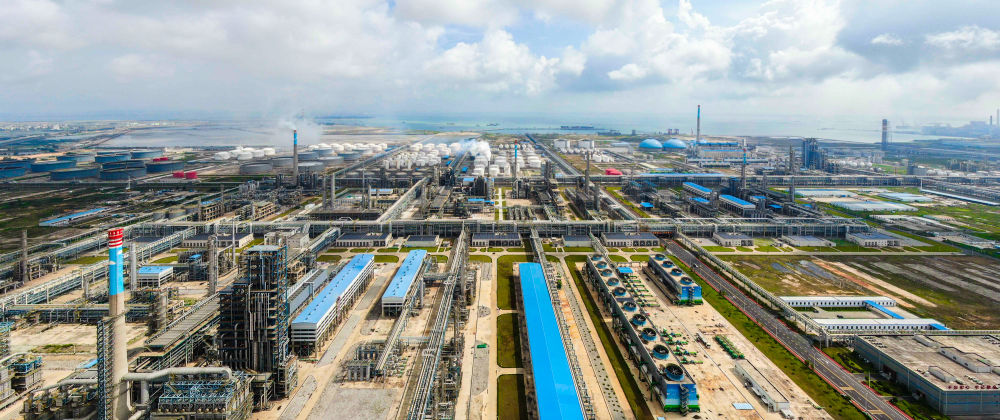 廣東省湛江市東海島拍攝的中科煉化廠區(qū)(5月25日攝,無人機照片)。聚集了寶鋼湛江鋼鐵、中科煉化和巴斯夫項目及一批上下游產(chǎn)業(yè)的湛江東海島,正迅速崛起綠色鋼鐵和綠色石化兩大千億級臨港工業(yè)集群,成為廣東最大的臨港工業(yè)島。新華社記者 鄧華 攝