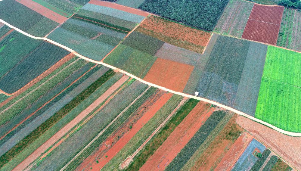 湛江市徐聞縣曲界鎮(zhèn)以菠蘿為主的多種作物農(nóng)田(5月26日攝,無人機照片)。新華社記者 盧漢欣 攝