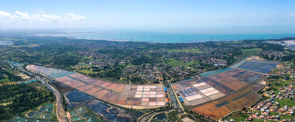 湛江“南極村”的鹽田(5月28日攝,無人機全景照片)。新華社記者 梁旭 攝
