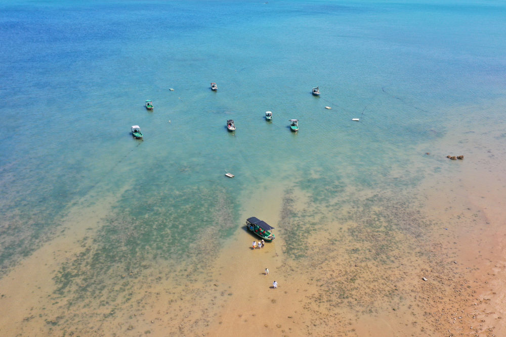 5月28日,游客在“南極村”趕海(無人機照片)。新華社記者 梁旭 攝
