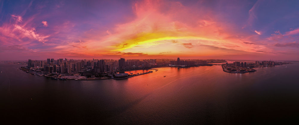 晚霞里的湛江金沙灣(2022年10月17日攝,無人機照片)。新華社發(fā)(郎樹臣 攝)