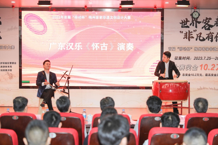 首屆“移動(dòng)杯”梅州客家非遺文創(chuàng)設(shè)計(jì)大賽啟動(dòng)儀式現(xiàn)場(chǎng)廣東漢樂(lè)表演。吳騰江 攝
