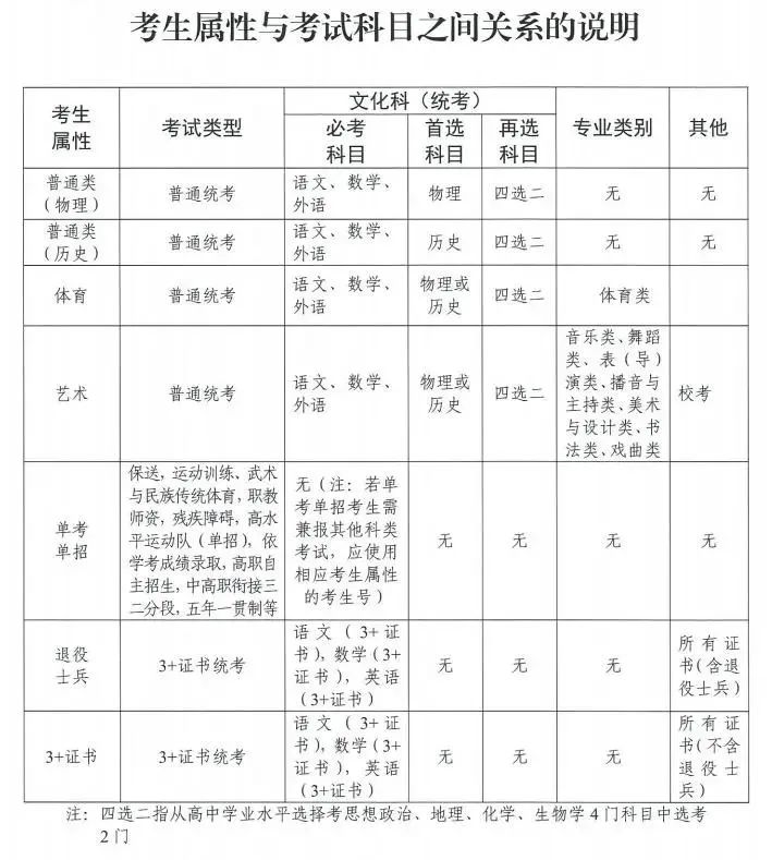 考生屬性與考試科目之間的關(guān)系說明詳見下表: