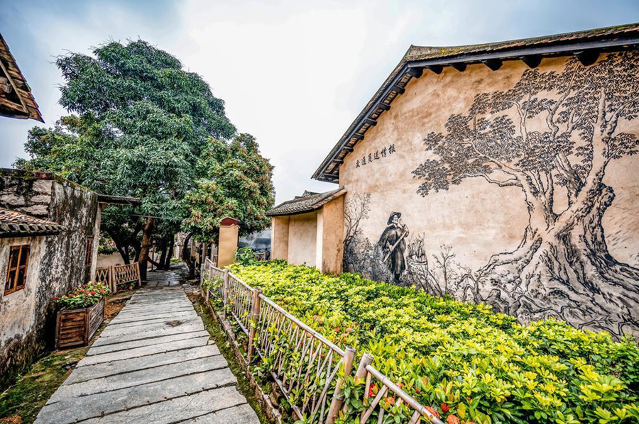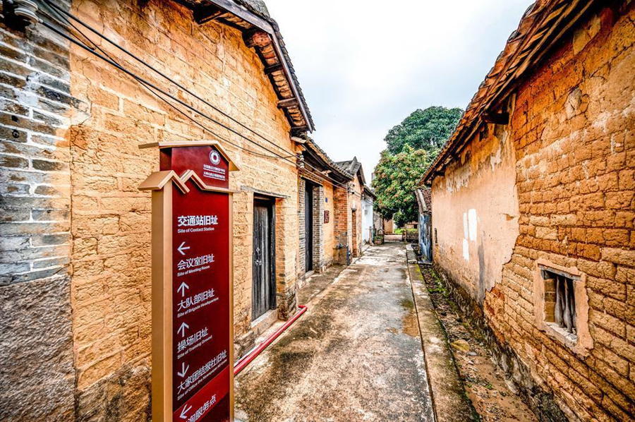 沿著縱隊路前進(jìn),穿梭于游擊巷間,看著成片低矮的青瓦泥磚屋與墻面上繪寫的“東江縱隊之歌”,濃郁的革命氣息撲面而來。這是位于東莞市大嶺山鎮(zhèn)大王嶺村的大嶺山抗日根據(jù)地舊址。廣東東江縱隊紀(jì)念館、大嶺山抗日根據(jù)地舊址講解員陳夢,在此向采訪團(tuán)介紹廣東人民抗日游擊隊第三大隊開辟大嶺山抗日根據(jù)地的歷史。