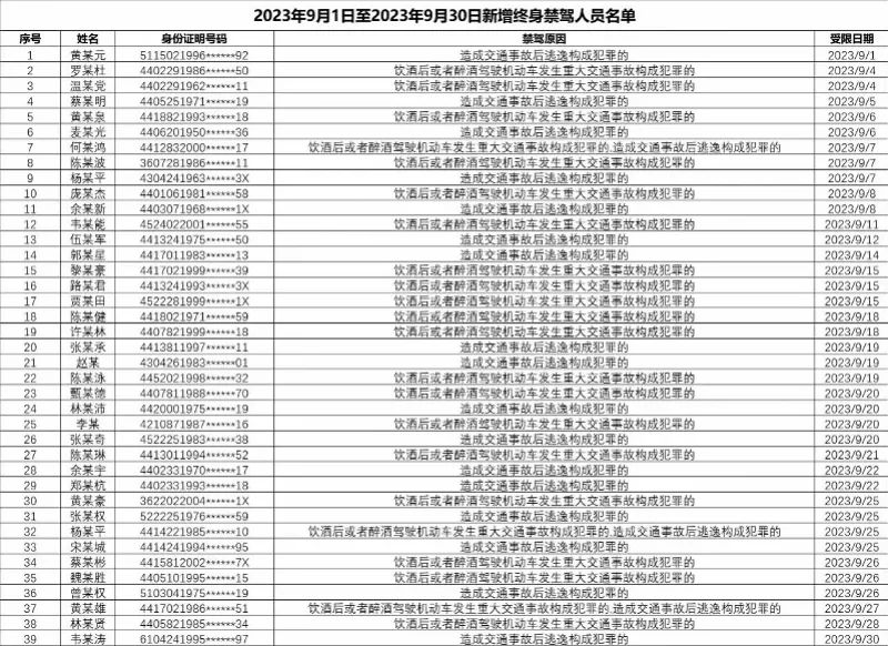 酒駕治理方面,9月份新增39名終身禁駕人員。其中,17人因造成交通事故后逃逸構成犯罪被終身禁駕,19人屬于飲酒或醉酒駕駛機動車發(fā)生重大交通事故構成犯罪被終身禁駕,3人屬于飲酒或醉酒駕駛機動車造成重大交通事故后逃逸構成犯罪被終身禁駕。39人中,持有AB證的駕駛員有4人。