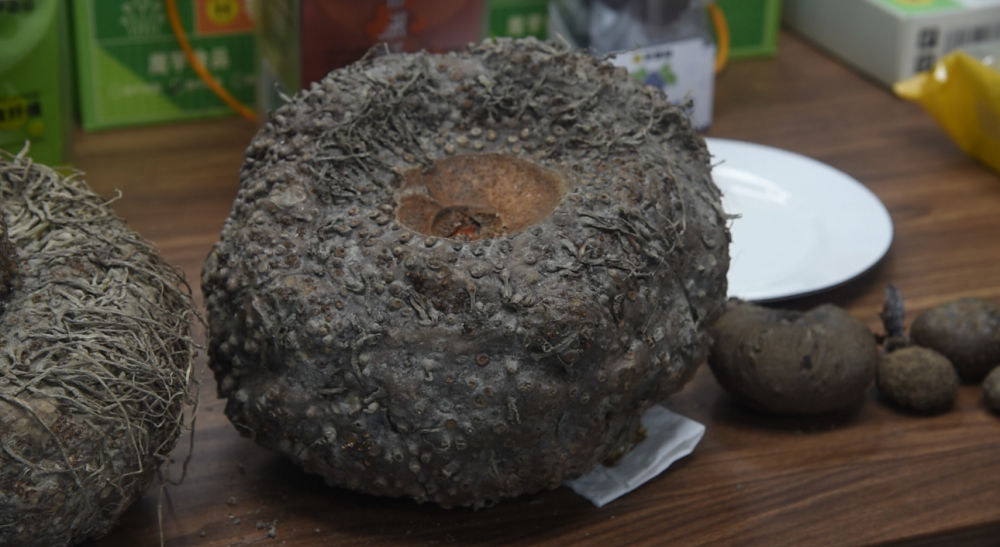 在水頭鎮(zhèn)農(nóng)業(yè)種植基地內(nèi),村民們正撥開田埂上的作物莖稈,用鐵鏟將地里直徑達20厘米的褐色“巨無霸”農(nóng)作物緩緩?fù)诔,這就是水頭鎮(zhèn)的新“致富果”——魔芋。