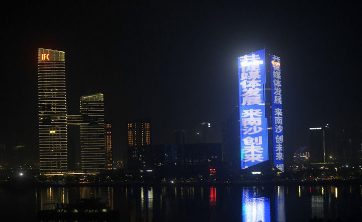 12月2日,廣州南沙地標(biāo)電子屏亮燈迎接世界媒體峰會(huì)。新華社記者 盧漢欣 攝