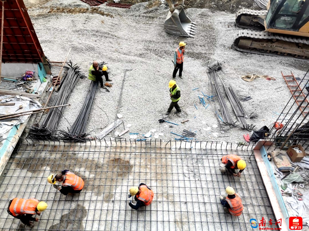 工人正在生態(tài)魚道尾水池位置進行圍堰、清淤施工,通訊員供圖。