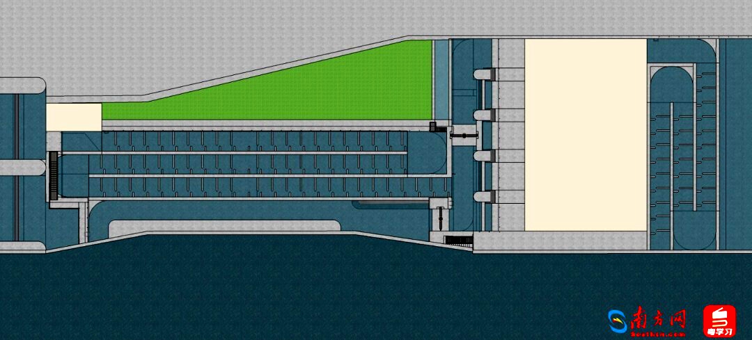 “旱季的時候,水比較淺,魚群聚集難度大。但尾水池一側因為河底較深,水位保持好,魚群比較穩(wěn)定。所以我們決定在底部再設置進魚口,并在進水池魚道設置兩個水閘,根據季節(jié)性水位控制閘門開閉,最大程度保證了魚道不同時期的利用率,給不同魚類在不同時期的洄游創(chuàng)造了可能。”劉川說。