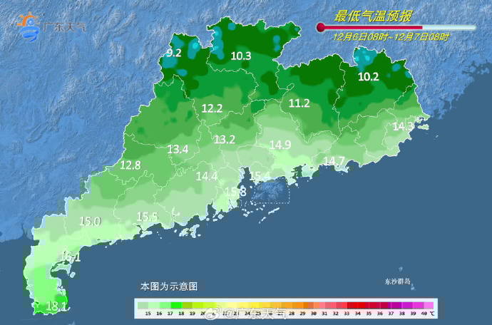 8日,中北部市縣晴間多云,南部市縣晴轉(zhuǎn)多云。最低氣溫:粵北和珠江三角洲北部市縣7~11℃,珠江口附近和粵西市縣15~18℃,其余市縣12~15℃。