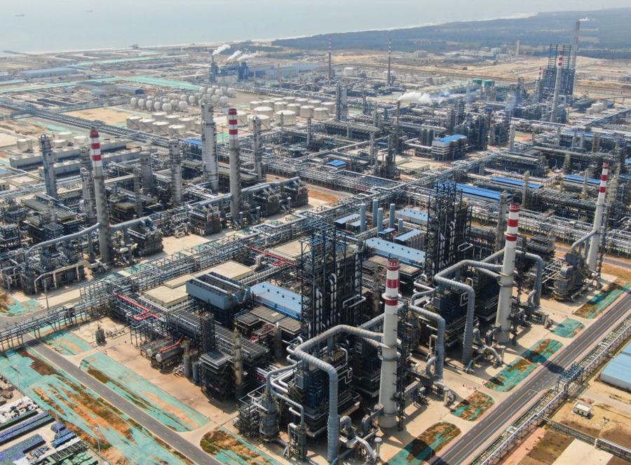 2023年3月7日拍攝的位于廣東省揭陽市惠來縣的中國石油廣東石化煉化一體化項目(無人機照片)。新華社記者鄧華 攝