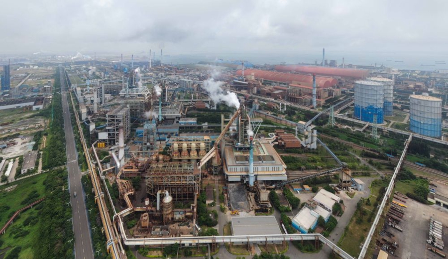廣東省湛江市東海島拍攝的寶鋼湛江鋼鐵廠區(qū)(2023年5月25日攝,無人機照片)。新華社記者鄧華 攝