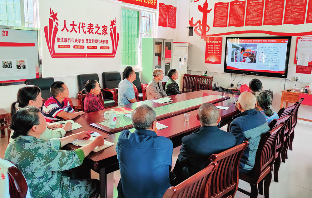 廣東省韶關市仁化縣長江鎮(zhèn)芭蕉垅村黨員收看黨的二十大精神專題培訓(2023 年 11 月 3 日攝) 廣東省委組織部供圖