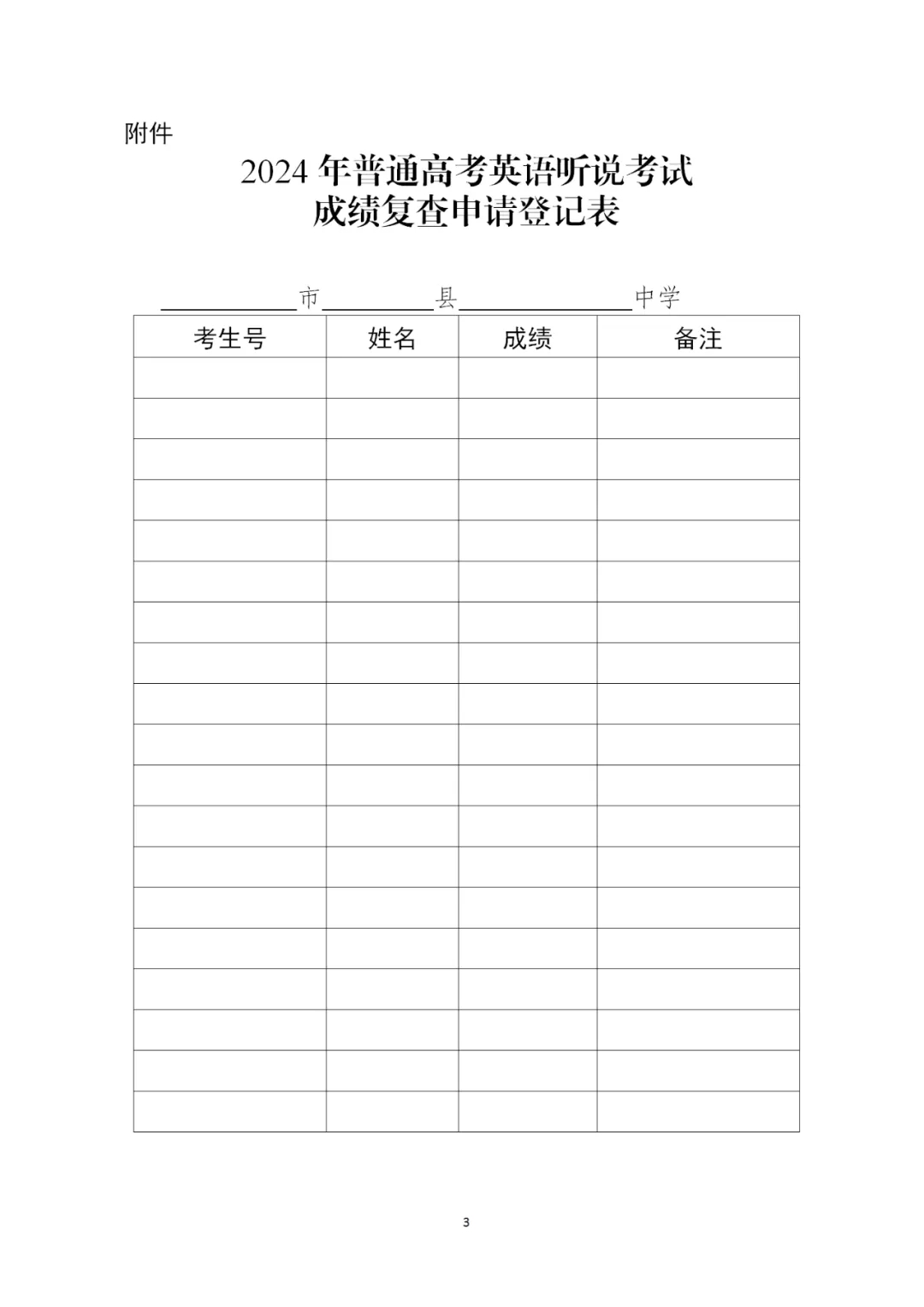 附件:2024年普通高考英語(yǔ)聽(tīng)說(shuō)考試成績(jī)復(fù)查申請(qǐng)登記表