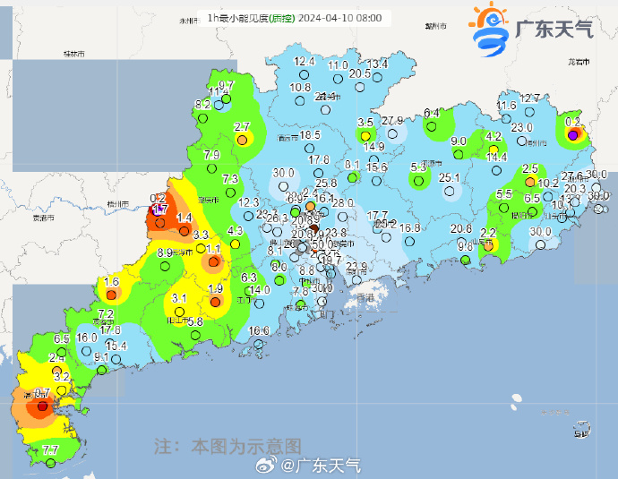 此外,今天8時,開封和大埔縣能見度低于200米,雷州、德慶、郁南等地能見度低于2公里。截至8時10分,開封和德慶的大霧橙色預警生效,恩平大霧黃色預警生效中。個別地方能見度較低,駕車出行要注意交通安全,注意控距,降速、亮尾。
