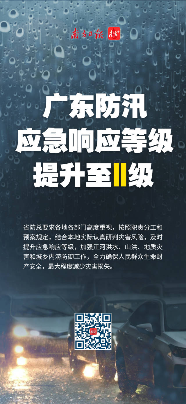 根據(jù)氣象、水文部門監(jiān)測預(yù)報,廣東省中北部市縣多地出現(xiàn)大暴雨、局部特大暴雨,江河洪水快速上漲,且未來強降雨過程將持續(xù),防汛形勢十分嚴峻。根據(jù)《廣東省防汛防旱防風(fēng)防凍應(yīng)急預(yù)案》和省防總有關(guān)規(guī)定,廣東省防汛防旱防風(fēng)總指揮部決定于4月20日18時將防汛Ⅲ級應(yīng)急響應(yīng)提升至Ⅱ級。