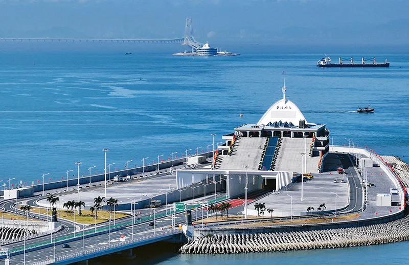 伶仃洋上煙波浩渺,港珠澳大橋如同一條巨龍飛騰在湛藍(lán)的大海之上。