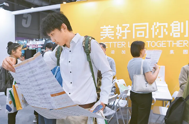 在粵港澳三地和有關(guān)部門有力推動(dòng)下,大灣區(qū)建設(shè)熱潮澎湃,城市之間“互相奔赴”密集涌現(xiàn),創(chuàng)新驅(qū)動(dòng)力不斷增強(qiáng)。圖為2023年11月4日,在“創(chuàng)新香港—國際人才嘉年華2023”上,一名求職者瀏覽華潤公司的招聘信息。 新華社記者 陳鐸/攝
