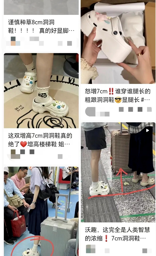 在社交平臺上,不少人曬出了自己的增高洞洞鞋。