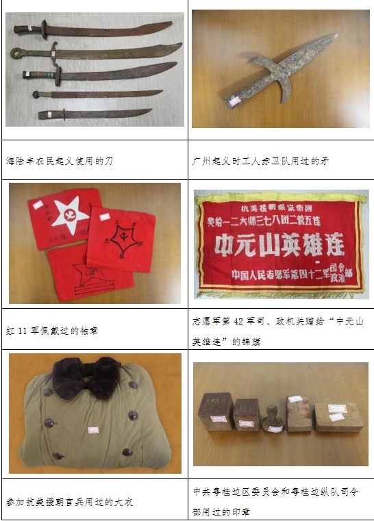 6.軍事人物類。在各個(gè)歷史階段與廣東有關(guān)的重要?dú)v史人物、英烈、愛國志士的肖像以及他們使用過的軍事裝備和生活用品等。