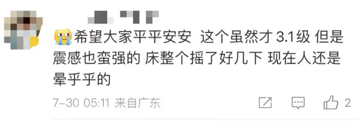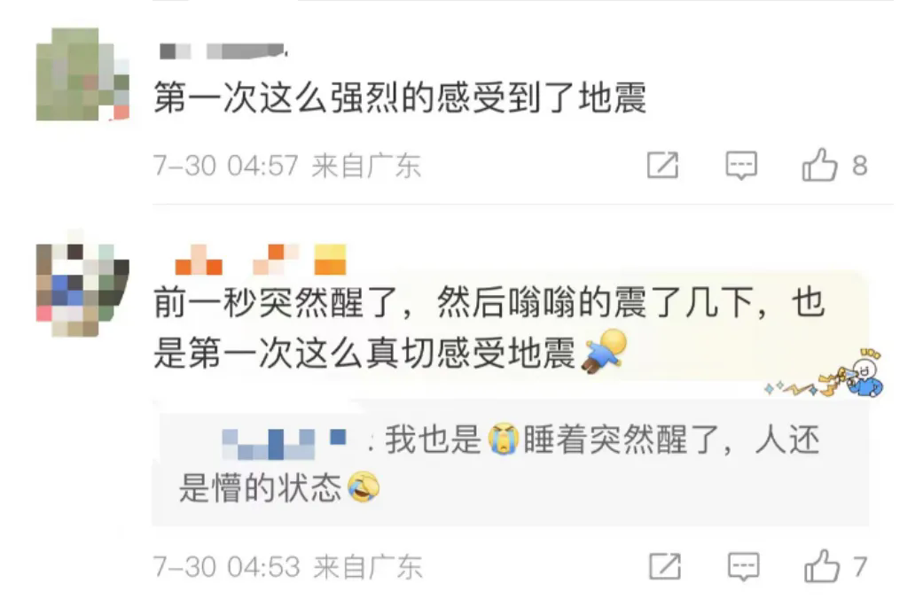 許多微博網友紛紛表示:“直接給震醒了”“震感蠻強的”……