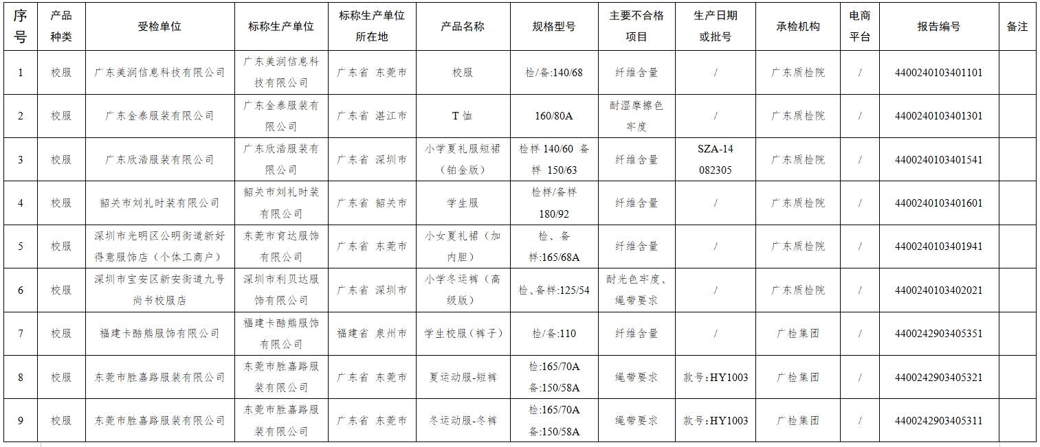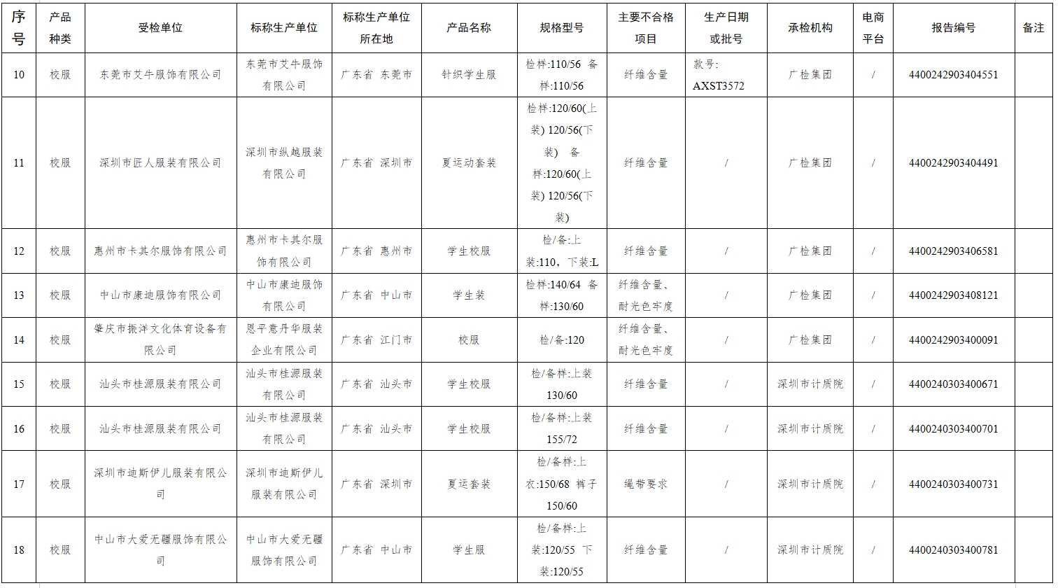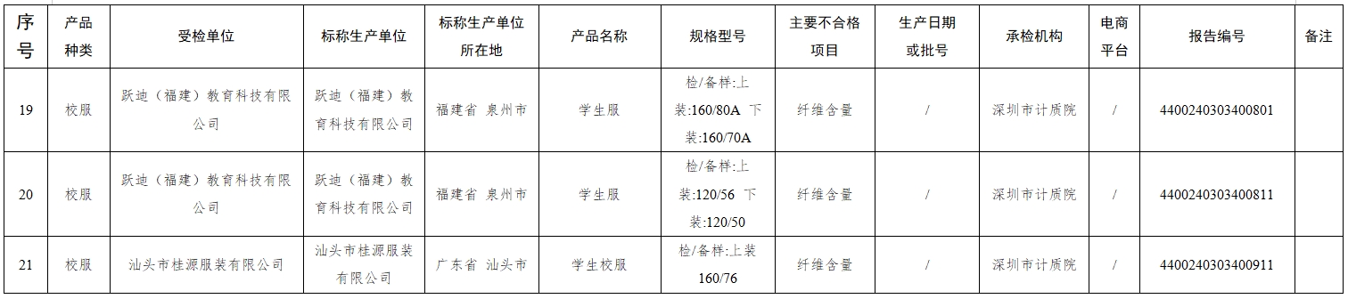 日前,廣東省市場監(jiān)督管理局、廣東省教育廳發(fā)布了《關(guān)于2024年校服產(chǎn)品質(zhì)量監(jiān)督抽查情況的通告》,共有21款校服產(chǎn)品抽查不合格。