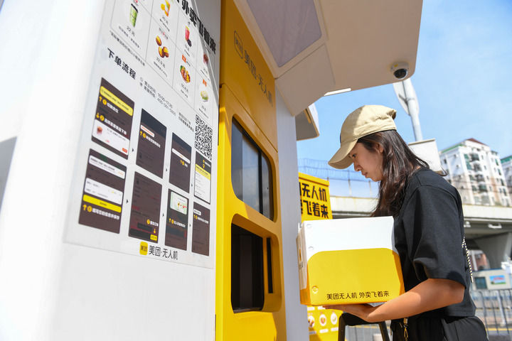 在深圳福田口岸,香港居民使用無人機(jī)外賣服務(wù)(2024年10月23日攝)。新華社記者 毛思倩 攝
