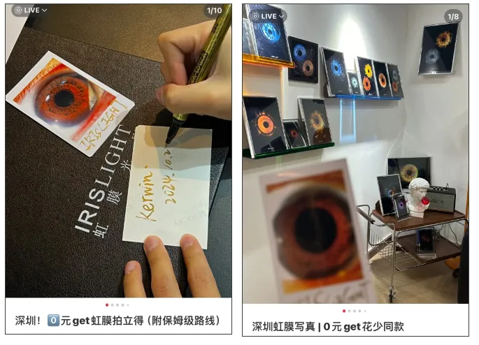 相關(guān)報道顯示,拍攝一張六寸的虹膜寫真照片價格為99至170元不等,經(jīng)過電腦渲染效果后,半個小時就能取片。根據(jù)照片再設(shè)計手串、手機殼等周邊產(chǎn)品。作為新興產(chǎn)業(yè),不少從業(yè)者比較看好此前景,目前多地已開了相關(guān)門店。有不少情侶前往拍攝,還有一些人是和自己的寵物拍攝。
