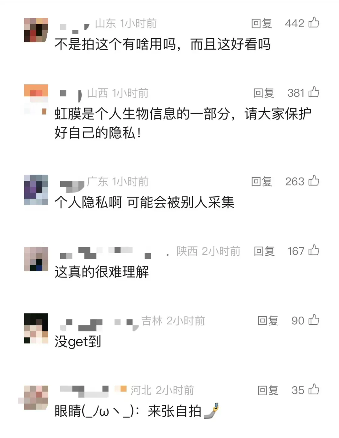 虹膜寫真走紅后,不少網(wǎng)友質(zhì)疑其安全性,表示“個人隱私可能會被采集”。
