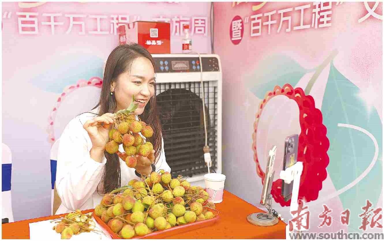 網(wǎng)絡達人在活動現(xiàn)場直播帶貨。南方日報見習記者 吳東俊 攝