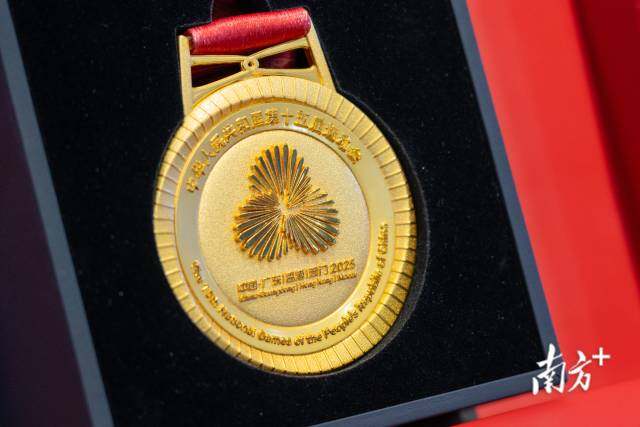 獎(jiǎng)牌的邊緣,三組水圓以獨(dú)特的莫比烏斯環(huán)形態(tài)優(yōu)雅呈現(xiàn)。“這三組水圓環(huán)繞中心的會(huì)徽,展示了粵港澳大灣區(qū)作為一個(gè)整體的融合態(tài)勢(shì)與蓬勃活力。”而獎(jiǎng)牌外環(huán)上精心鐫刻的66道清晰的紋路,則代表著從1959年第一屆全運(yùn)會(huì)至今,走到第十五屆全運(yùn)會(huì)所歷經(jīng)的66年歷史。