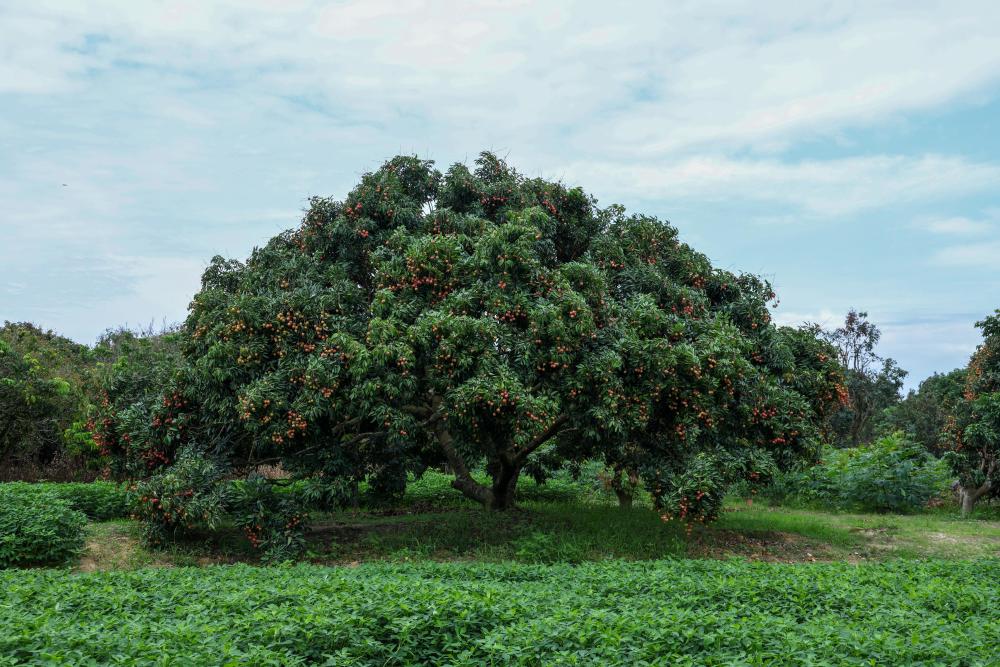 ↑這是6月5日在廣東茂名高州一處果園拍攝的掛滿荔枝果的荔枝樹。