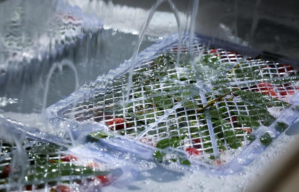 ↑6月4日,在廣東茂名高州市廣東銘景農(nóng)業(yè)發(fā)展有限公司,荔枝進(jìn)行預(yù)冷處理。