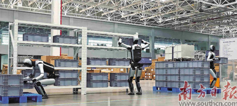 多臺(tái)Walker S2群體協(xié)同作業(yè)。南方日?qǐng)?bào)記者 朱洪波 通訊員 羅艷 攝