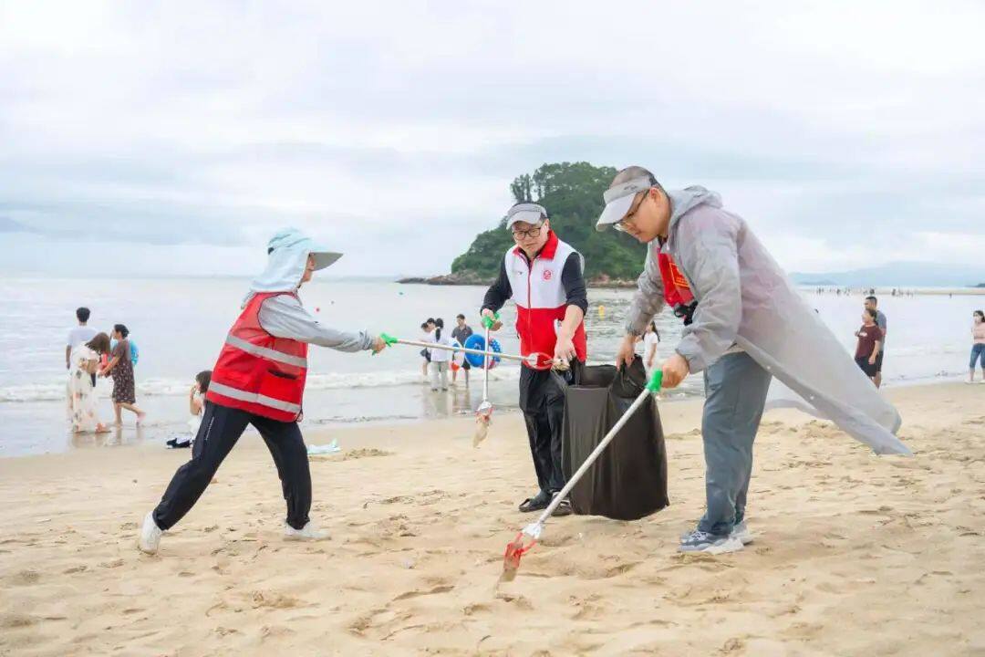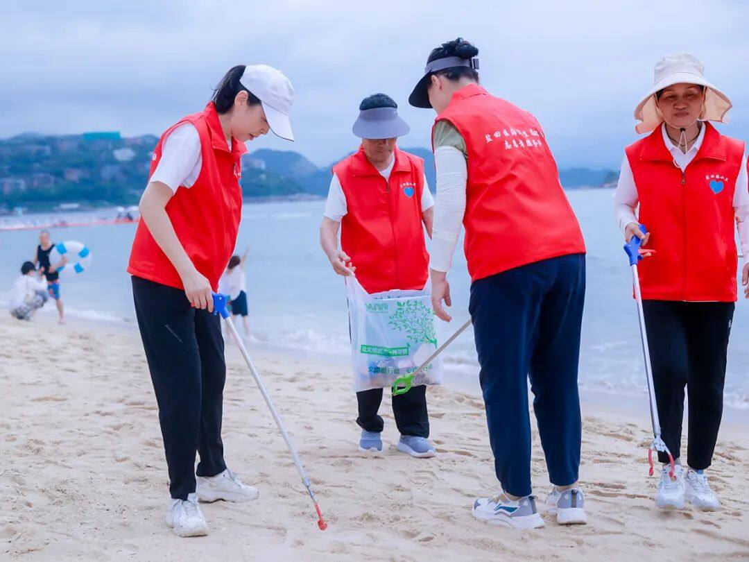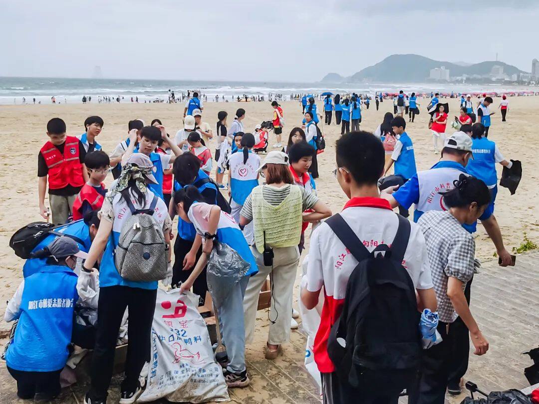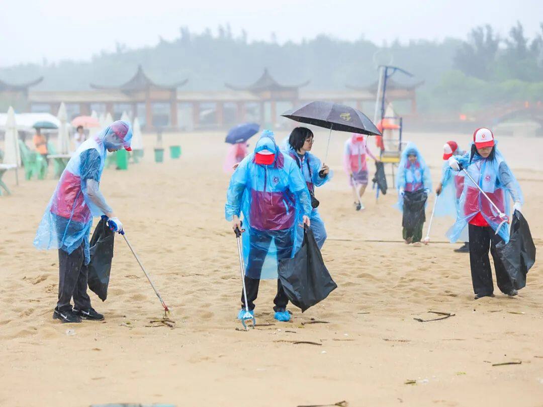 啟動(dòng)儀式后,志愿者開展凈灘撿跑,清理沿途的海灘垃圾。集中收集的垃圾經(jīng)再生處理將制作美麗吉祥物。