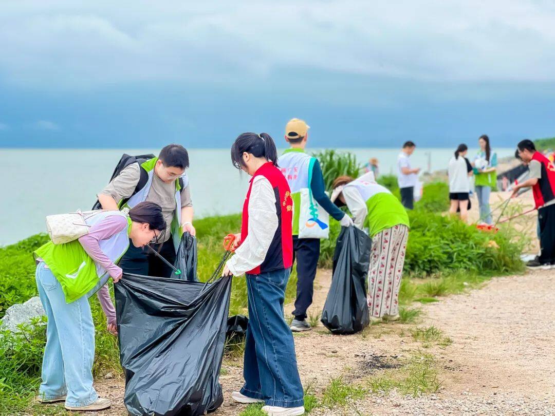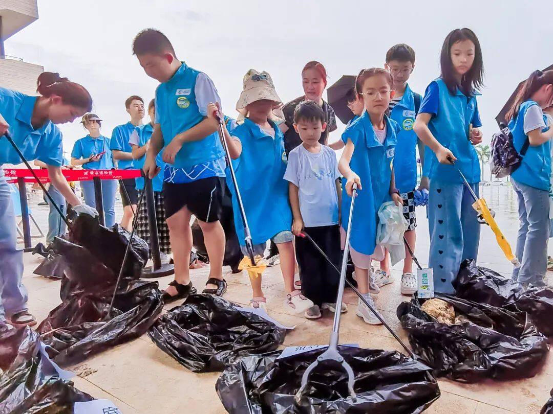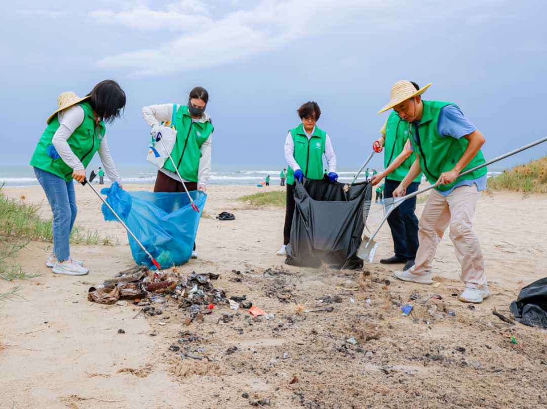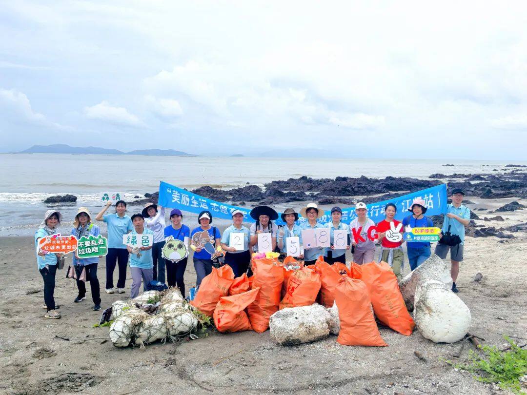啟動(dòng)儀式后,志愿者開展凈灘撿跑,清理沿途的海灘垃圾。集中收集的垃圾經(jīng)再生處理將制作美麗吉祥物。