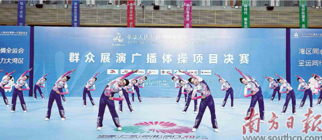 廣東隊(duì)在十五運(yùn)會(huì)群眾展演廣播體操項(xiàng)目決賽比賽中。錢(qián)文攀 攝