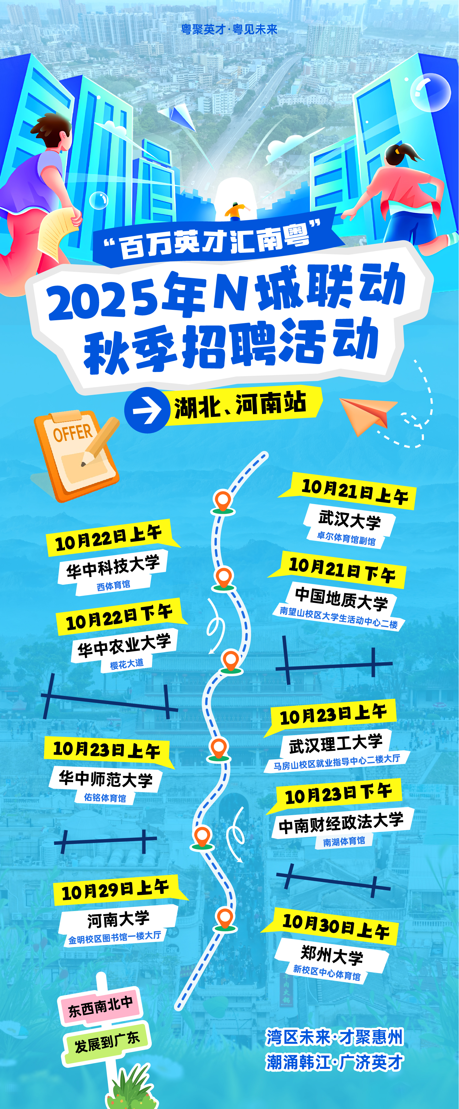 還在重復 “海投簡歷石沉大! 的循環(huán)?想扎根經(jīng)濟活力滿滿的廣東,卻愁沒機會對接優(yōu)質(zhì)企業(yè)?別慌!10月21日起,“百萬英才匯南粵” 2025年N城聯(lián)動秋季招聘直接“空投”到鄂豫9所雙一流高校,好工作、貼心福利,全給安排上!