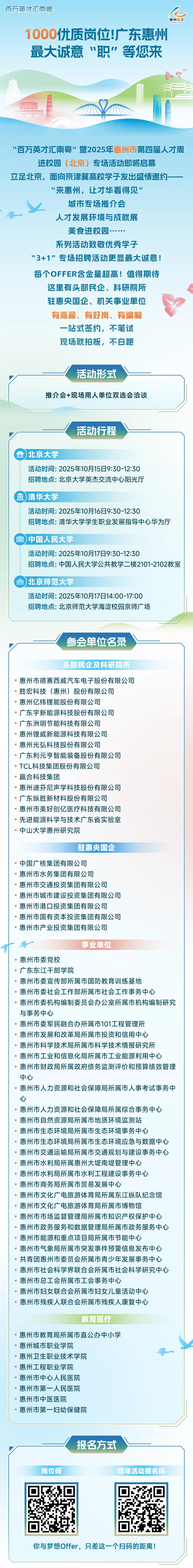 百萬英才匯南粵丨1000優(yōu)質(zhì)崗位!廣東惠州,最大誠意“職”等您來