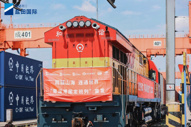 攜手開拓新興市場(chǎng)——汽笛嘹亮,首趟“蓉深港圖定班列”經(jīng)深圳鹽田港中轉(zhuǎn)至香港葵青港,換裝上國(guó)際班輪發(fā)往世界各地。香港發(fā)揮國(guó)際金融中心作用,為共建“一帶一路”項(xiàng)目提供金融“活水”。