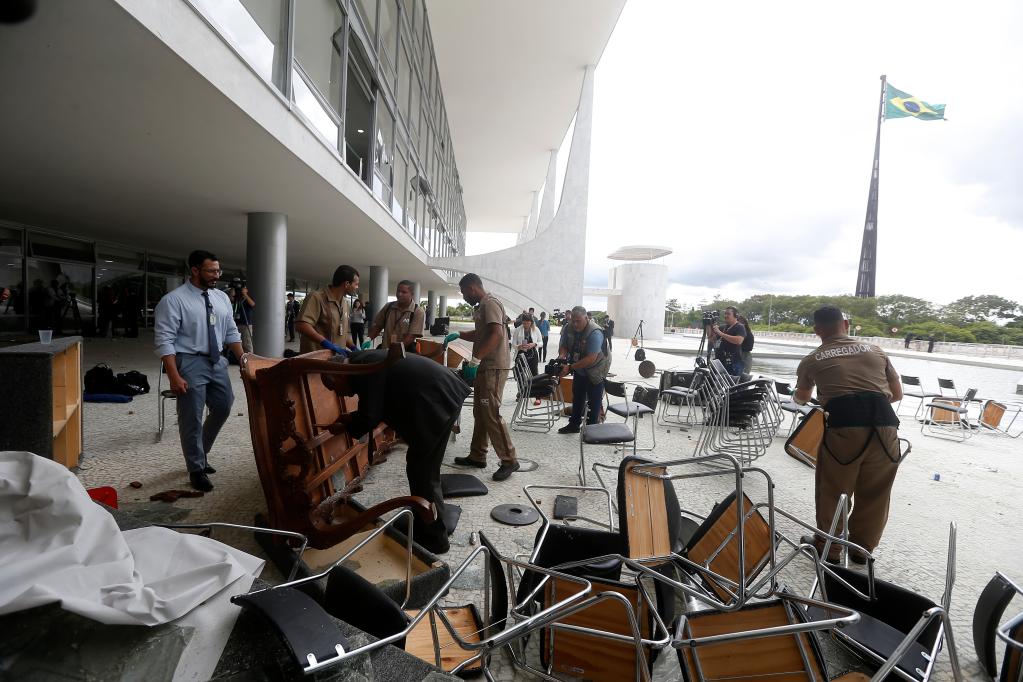 因不滿(mǎn)去年10月的大選結(jié)果,數(shù)千名博索納羅的支持者1月8日闖入位于首都巴西利亞的國(guó)會(huì)大廈、聯(lián)邦最高法院和總統(tǒng)府,對(duì)內(nèi)部設(shè)施和設(shè)備實(shí)施打砸破壞,導(dǎo)致總統(tǒng)府窗戶(hù)破損、辦公用品散亂,國(guó)會(huì)大廈部分區(qū)域淹水,最高法院多個(gè)會(huì)議廳遭洗劫。部分示威者還與軍警發(fā)生沖突。據(jù)巴西警方透露,目前共有超過(guò)1500名暴力示威者被逮捕。