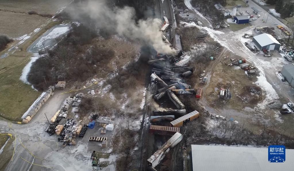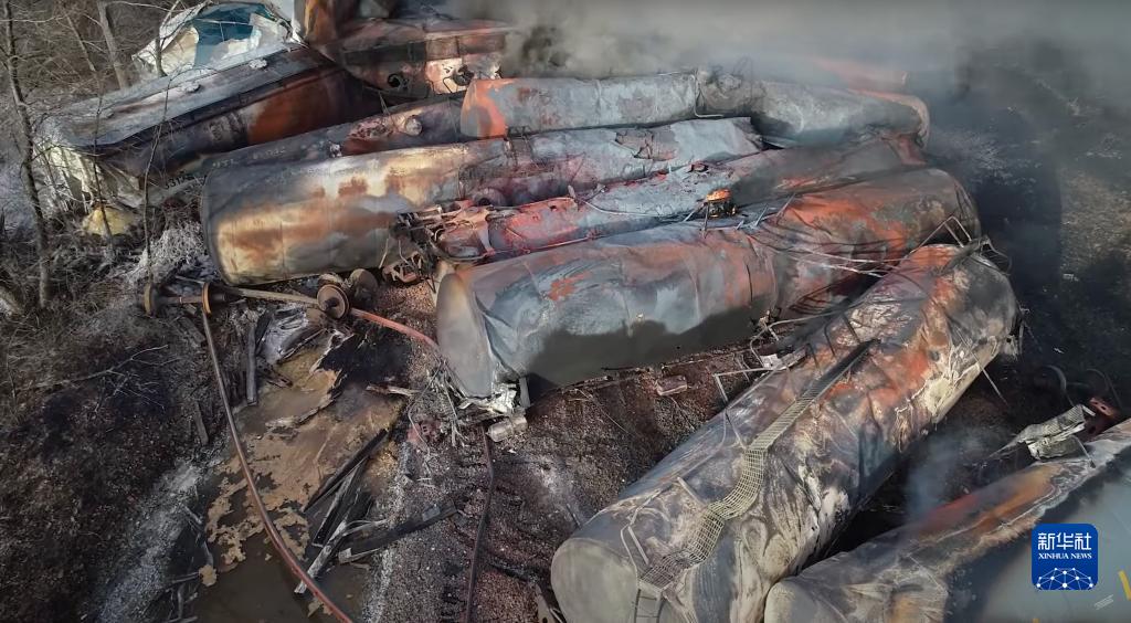 本月3日晚,美國諾?四戏借F路公司一輛貨運(yùn)列車駛經(jīng)俄亥俄州東巴勒斯坦鎮(zhèn)時(shí)因機(jī)械故障發(fā)生事故,導(dǎo)致約50節(jié)車廂脫軌。10節(jié)車廂運(yùn)載有毒化學(xué)品,其中5節(jié)運(yùn)載易燃且致癌的氯乙烯。應(yīng)急人員6日對這些氯乙烯進(jìn)行了“受控釋放”和燃燒,以防發(fā)生大規(guī)模爆炸。