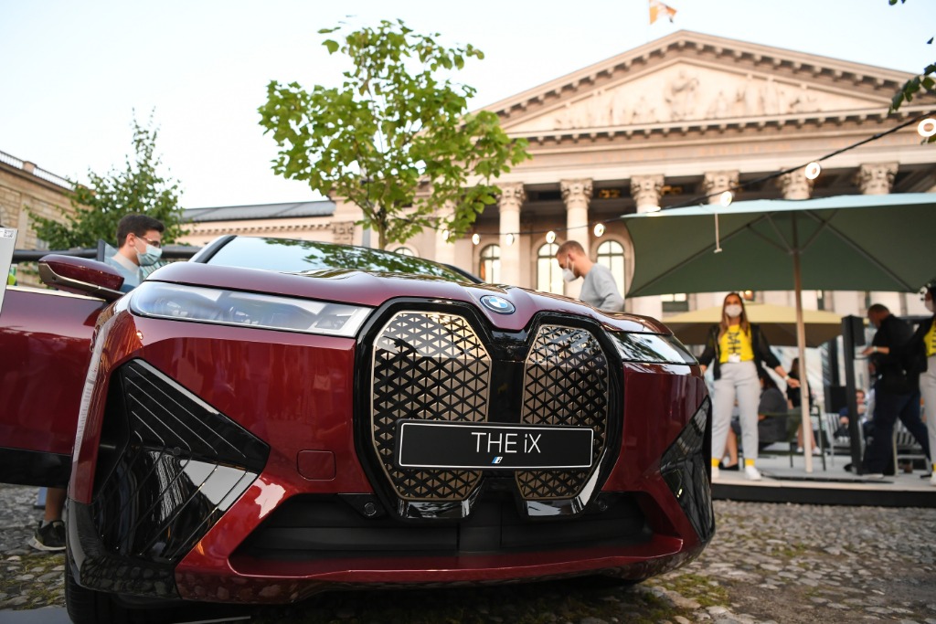 這是2021年9月8日在德國慕尼黑國際車展寶馬汽車戶外展區(qū)拍攝的一臺寶馬iX電動車。新華社記者逯陽攝