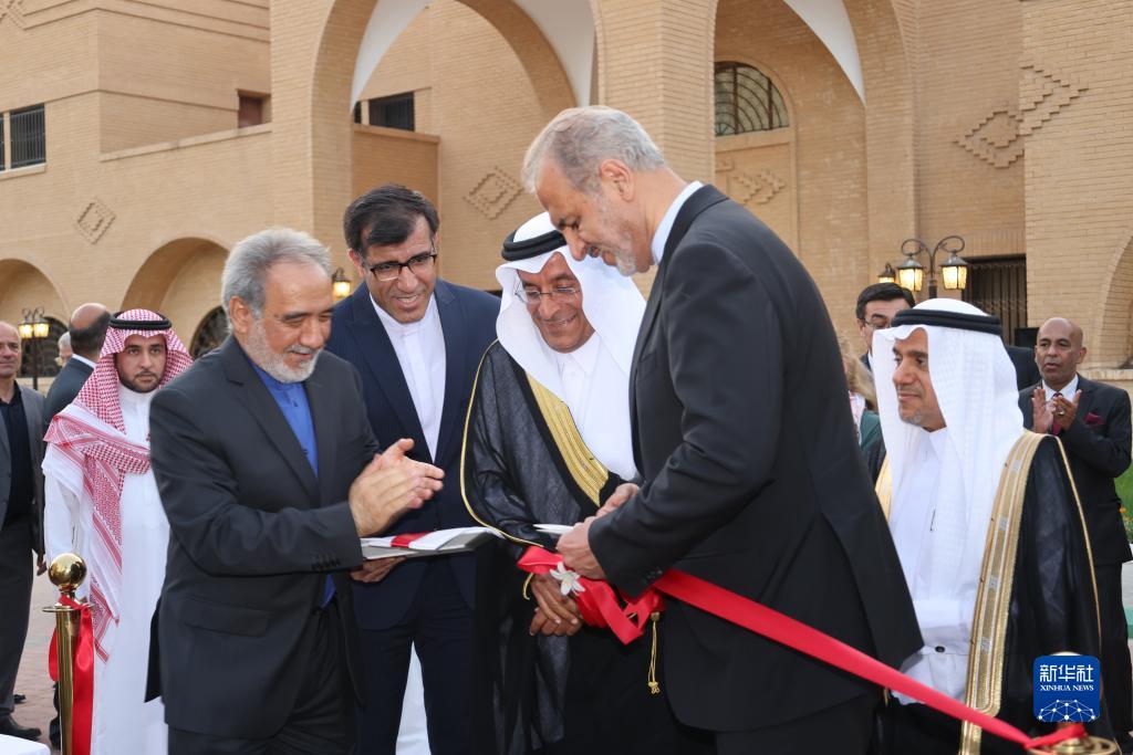 6月6日,在沙特阿拉伯利雅得,伊朗副外長(zhǎng)比格德利(前)、沙特副外交大臣優(yōu)素福(中)等出席伊朗駐沙特阿拉伯大使館復(fù)館儀式。新華社記者王海洲攝