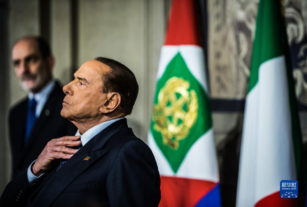 這張資料照片顯示的是,2018年4月12日,意大利前總理貝盧斯科尼在羅馬出席記者會(huì)。新華社記者 金宇 攝